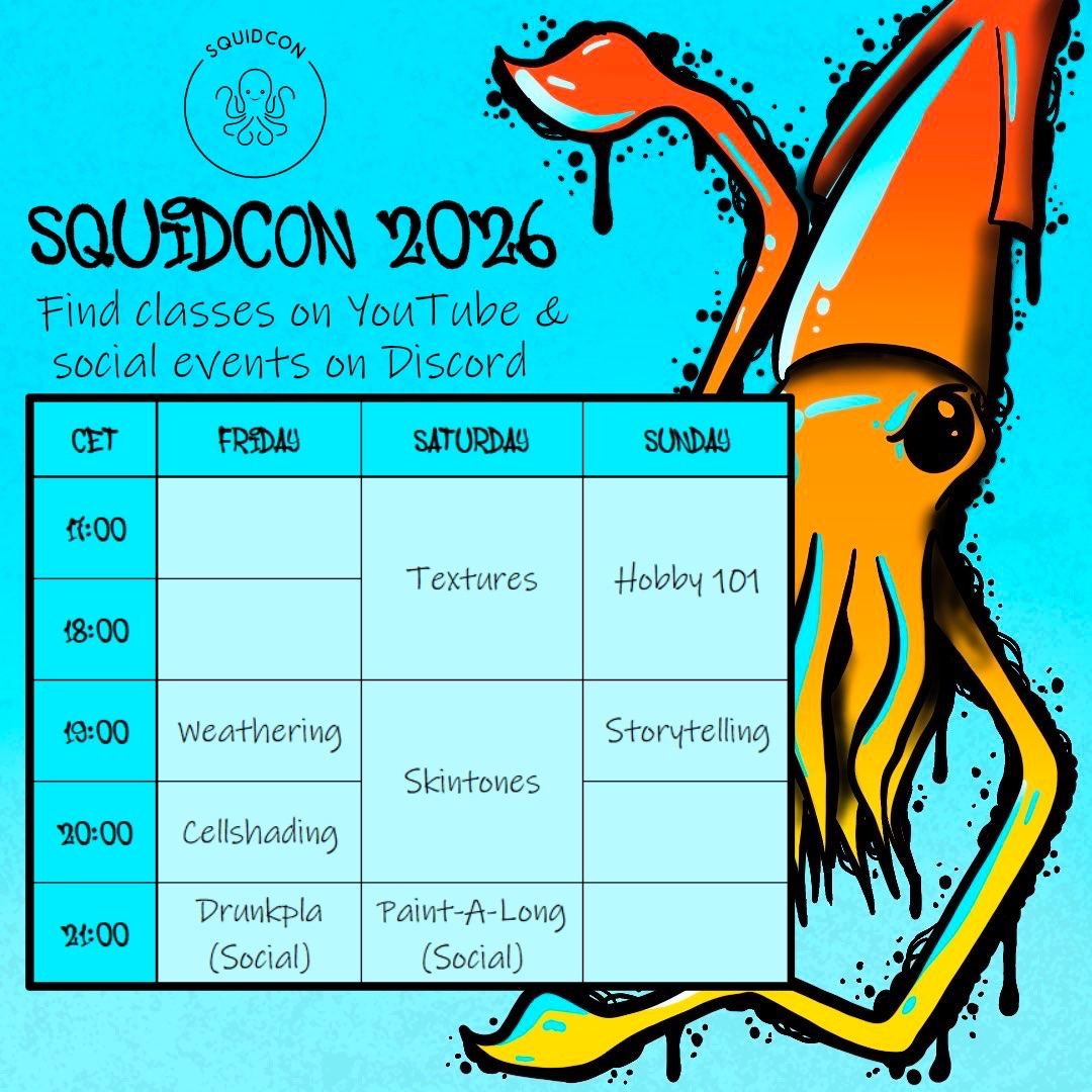 We’ve finalised all the classes for SquidCon ! We got some new and exciting classes for you all AND an extra social event ! The social events will be in our voice chat channel on the Patreon Discord.